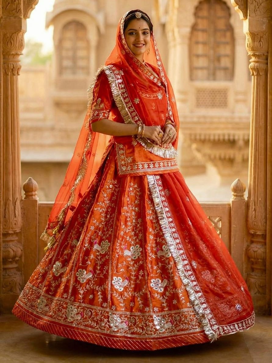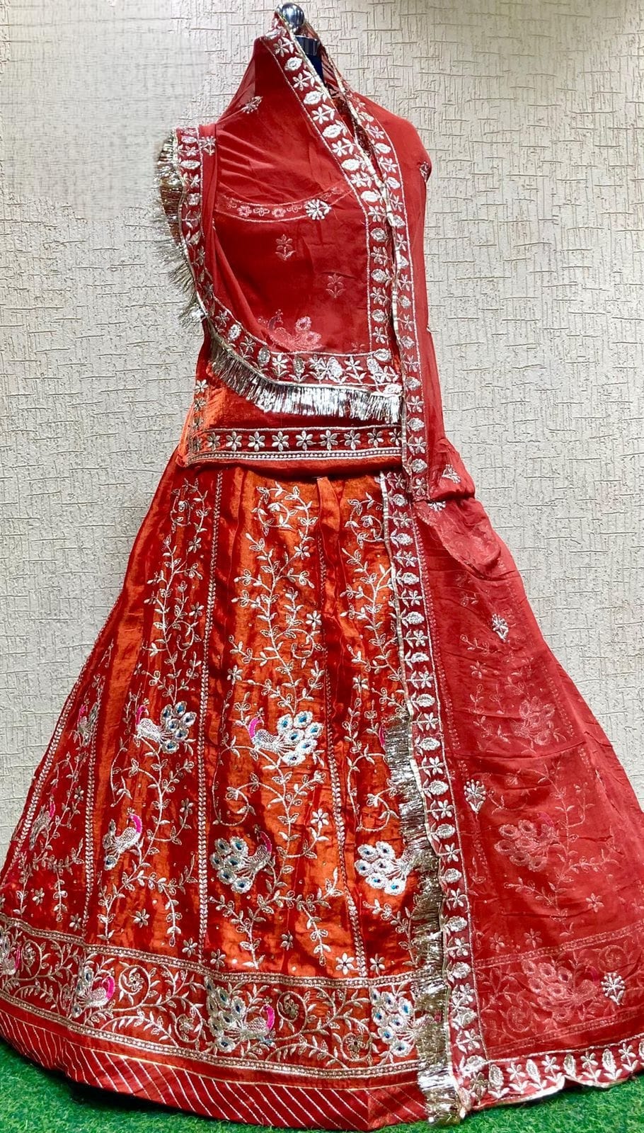 Step into the timeless charm of Rajasthan with the Red Fancy Chunari Poshak with Zari and Lappa Work, exclusively available at Banadi Store. This royal ensemble brings together traditional artistry, luxurious fabrics, and detailed handwork, making it the perfect choice for weddings, festive occasions, and cultural celebrations.